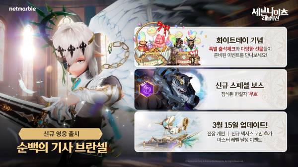 넷마블은 오픈월드 MMORPG '세븐나이츠 레볼루션'에 영웅 순백의 기사 브란셀을 추가했다.