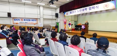 윤환 구청장은 축사를 통해 "오늘 입학하신 분들을 보니 배움은 끝이 없다는 것을 몸소 보여주시는 모습이 참 존경스럽다"면서 "노인대학을 통해 어르신들이 단조로운 일상을 벗어나 삶의 활력을 찾고 상호 소통의 기회가 되길 바란다"고 말했다.