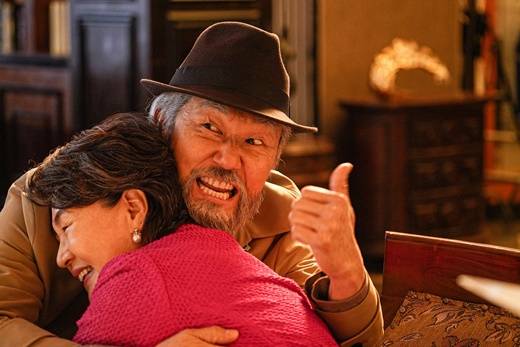 또 다른 스틸에는 하얀 머리에 하얀 수염, 멋진 중절모를 쓰고 노인 분장을 한 박성웅(김인해 역)이 고급스러운 분위기의 중년 여성을 안은 채 엄지를 치켜들고 있어 궁금증을 자극한다. 극 중 자타 공인 대한민국 최고의 사기꾼이자 변신의 귀재 김인해 캐릭터답게 놀라운 변장술을 보여준다.