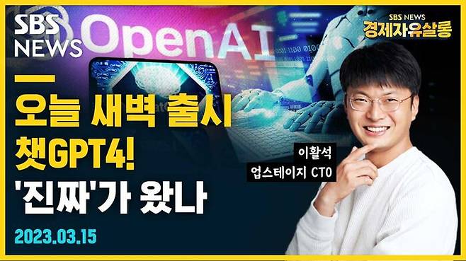 오늘 SBS 경제자유살롱은 이활석 업스테이지 CTO(최고기술책임자)와 함께 챗GPT4에 대해 이야기 나눕니다.
