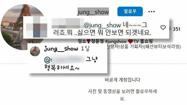 - 쇼호스트 정윤정, 욕설 방송 후 누리꾼과 설전 “내 방송 보지 마세요”