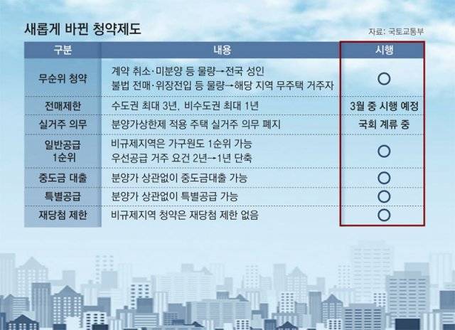 부정청약 취소분, 그 지역 거주자만 ‘실거주 의무 폐지’ 국회 통과 안 돼 분양권 전매제한 완화 이달 중 시행