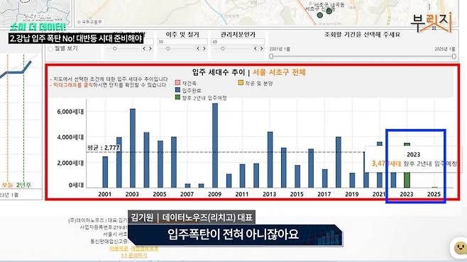 서울 서초구에는 올해 준공을 앞둔 아파트 단지가 여럿 있다. 부동산 시장이 얼어붙은 상황에서 공급이 수요를 앞질러 대세적인 하락을 주도할 것이란 전망이 나오는 이유다. 하지만 김기원 리치고(데이터노우즈) 대표는 입주 폭탄 수준의 공급량은 아니라고 지적했다. 데이터로 볼 때 오히려 올해 이후 아파트 공급이 잠기며 반등의 트리거가 될 수 있다고 하는데, ☞머니투데이 부동산 유튜브 채널 '부릿지'가 '강남 입주 폭탄'설의 진실을 알아봤다.