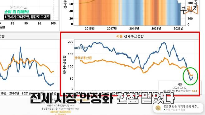 안정화 되겠죠. 부동산 시장이 상승하려면 일단 전세 시장부터 안정화가 돼야 합니다. 하지만 보시는 것처럼 전세 수급도 굉장히 안 좋아요. 즉, 전세시장이 안정화 되려면 지금 한참 멀었다. 그리고 전세 시장이 안정화되지 않은 이상 매매시장은 어떻게 된다? 대세상승은 절대로 있을 수 없다는 거죠.