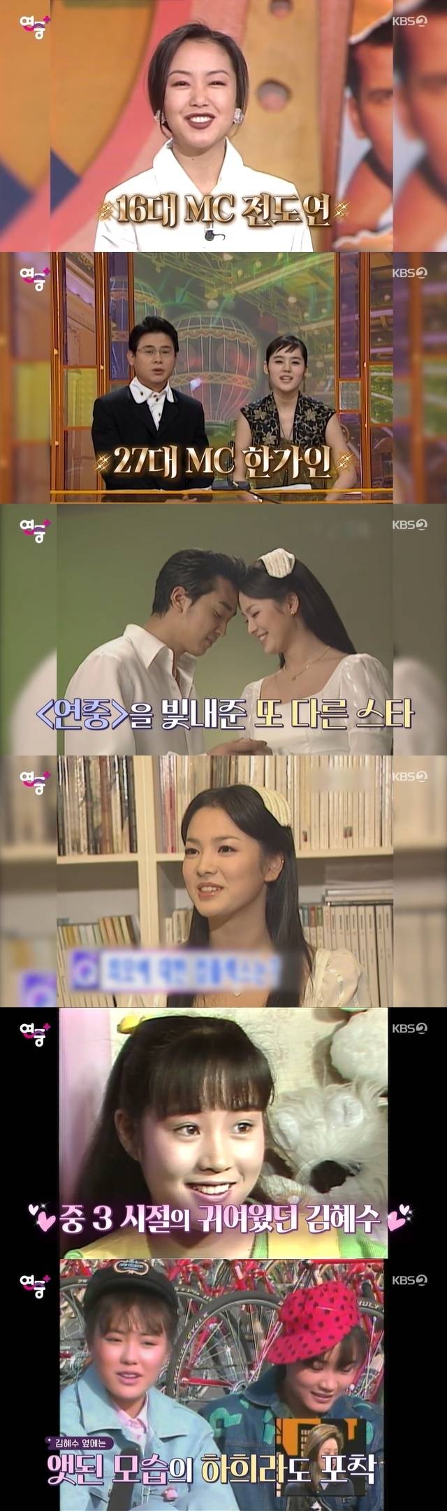 어린 나이에 데뷔해 도시적이고 세련된 외모로 단숨에 하이틴 스타 반열에 올랐던 배우 김혜수는 과거 중3 시절 귀여운 외모로 '연중'에 출연했었는데, 그 옆엔 앳된 모습의 하희라가 자리하고 있기도 했다. 김희선은 과거 심신을 좋아하던 평범한 소녀였다.