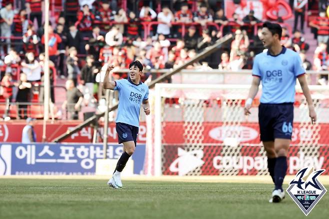 2019년 매진사례 때 고재현은 그라운드 밖에서 '쿵!쿵!골!' 응원을 지켜봤었다. '나도 저 소름 돋는 응원을 받으며 뛰고 싶다'는 마음이 간절했다. 지난해 서울이랜드 임대를 끝내고 돌아온 대구에서 팀내 최다골 13골을 터뜨리며 날아오른 '대세 영건' 고재현이 마침내 만원관중 앞에 설 첫 기회가 왔다.