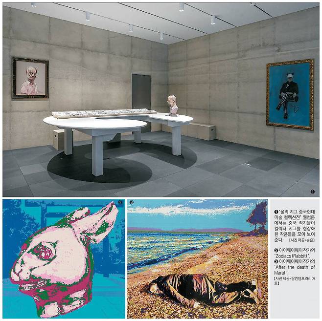 전시 초입에는 '가면' 연작으로 유명한 중국 아방가르드 대표 화가 쩡판즈(59)가 본인 화풍을 살려 표현한 지그 초상화가 눈길을 사로잡는다. 2013년 '최후의 만찬'이 1억8000만홍콩달러(약 250억원)에 낙찰돼 아시아 현대미술 작가 중 최고 가격을 기록했었다.