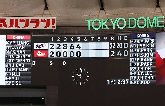 | ▲ [13일 월] 일본 도쿄돔에서 열린 2023 월드베이스볼클래식(WBC) B조 본선 1라운드 한국과 중국의 경기가 5회말 22대 2 한국의 콜드게임 승리로 끝났다. 2승 2패를 기록한 한국은 B조 3위로 조별리그 일정을 마치면서 3회 연속 1라운드 탈락을 확정했다. 한국이 이날 뽑은 22득점은 2006년 대회 창설 이후 최다 득점 및 최다 점수 차 기록이다. |