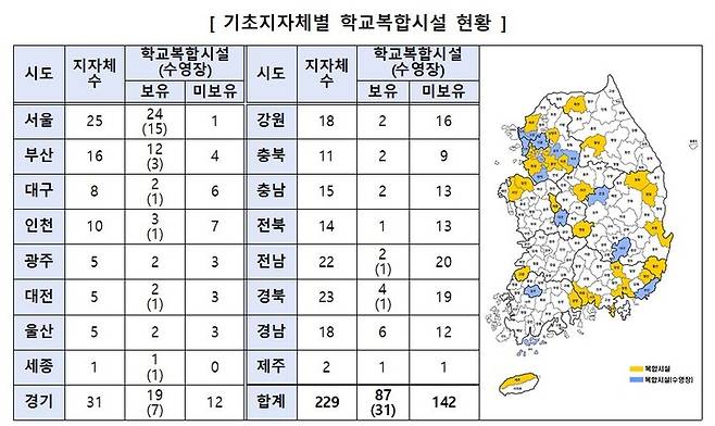 학교복합시설은 2001년 서울 성동구 금호초등학교를 시작으로 현재 226개교에 설치돼 있다. 2019년에는 국무조정실 생활SOC추진단 주도로 지난해까지 3년 동안 복합화 시설 확충을 추진했다.