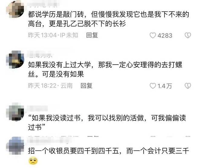 '지식 무용론' 확산하자 관영 매체까지 나서 "직업에 귀천 없다. 기대치를 낮추라"