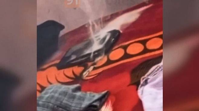 스마트폰이 놓여 있던 침대 시트가 심하게 손상된 모습도 보이는데요.