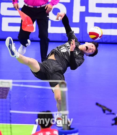 [마이데일리 = 수원 곽경훈 기자] 한국전력 장지원이 17일 오후 경기도 수원실내체육관에서 진행된 '도드람 2022-2023 V-리그' 한국전력-KB손해보험의 경기에서 디그를 위해 몸을 날리고 있다.- ⓒ마이데일리(www.mydaily.co.kr). 무단전재&재배포 금지 -