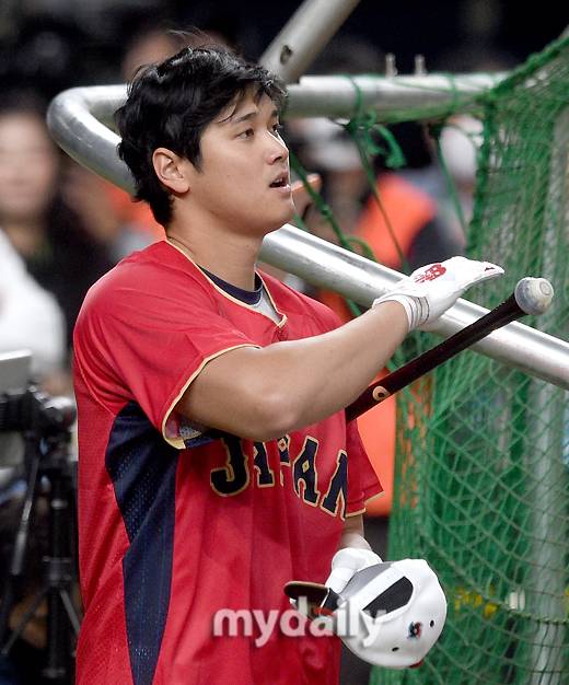 한국을 포함 상대팀 선수들도 오타니의 연습 타격을 보며 깜짝 놀랐다.