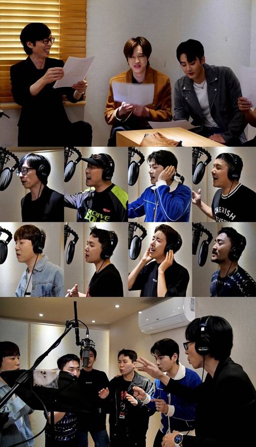 오늘(18일) 오후 방송되는 MBC 예능 '놀면 뭐하니?'에서는 틴탑 니엘, 창조 선배님들과 함께 녹음실에 입성한 '원탑' JS(유재석), 하하, 이이경, 조세호, 남창희, 양세형, 황광희, 유병재 등 연습생들의 모습이 그려진다.