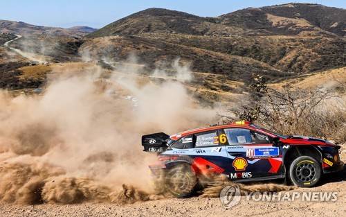 epa10529339 Drivers Daniel Sordo and Candido Carreras of the Hyundai team participate in the WRC Guanajuato Rally, in Guanajuato, Mexico, 17 March 2023. EPA/Luis Ramirez