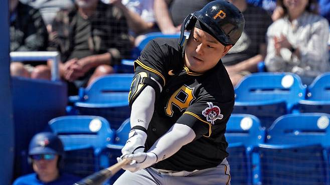 배지환은 2회말 원아웃 1, 2루에서 우중간을 가르는 1타점 2루타를 쳐 올해 시범경기 첫 타점을 기록했습니다.