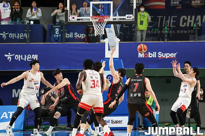 연장 4분 동안 무득점에 그친 SK는 84-90으로 끌려갔지만, 자밀 워니의 연속 득점으로 88-90으로 따라붙었다.