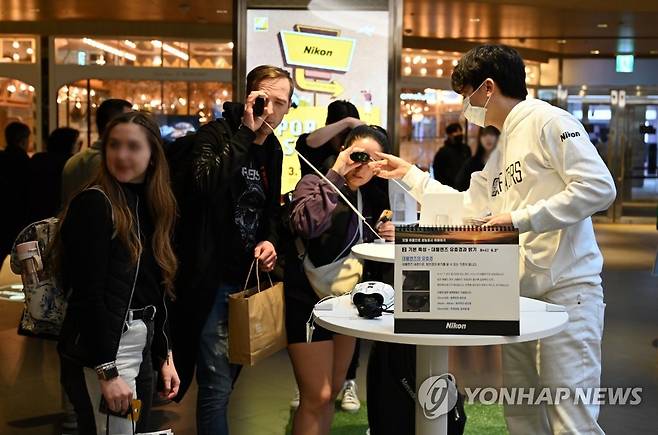 (서울=연합뉴스) 서울 강남구 파르나스몰에 니콘이미징코리아 팝업스토어에서 소비자들이 니콘 카메라 및 거리측정기를 체험하고 있다.