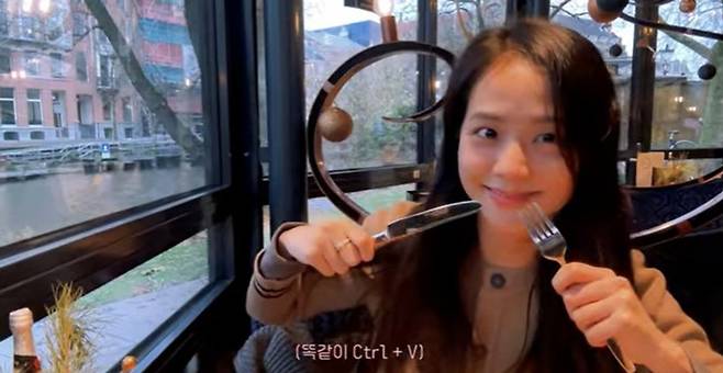 영상에는 암스테리담을 찾은 블랙핑크 지수의 모습이 담겼다. 지수는 제니와 함께 카페에서 즐거운 시간을 가지는 모습.