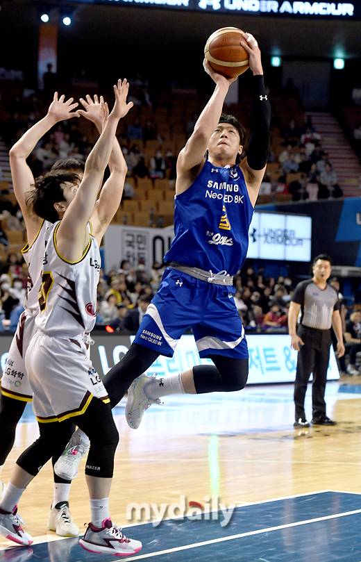 [마이데일리 = 유진형 기자] 서울삼성 이정현이 18일 오후 서울 잠실실내체육관에서 진행된 '2022-2023 SKT 에이닷 프로농구' 서울삼성과 창원LG의 경기에서 골밑 공격을 하고 있다.