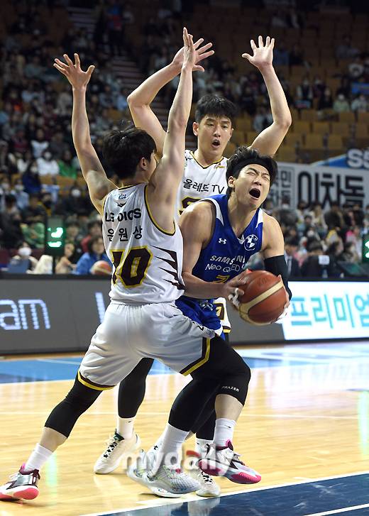 [마이데일리 = 유진형 기자] 서울삼성 이정현이 18일 오후 서울 잠실실내체육관에서 진행된 '2022-2023 SKT 에이닷 프로농구' 서울삼성과 창원LG의 경기에서 골밑 공격을 하고 있다.