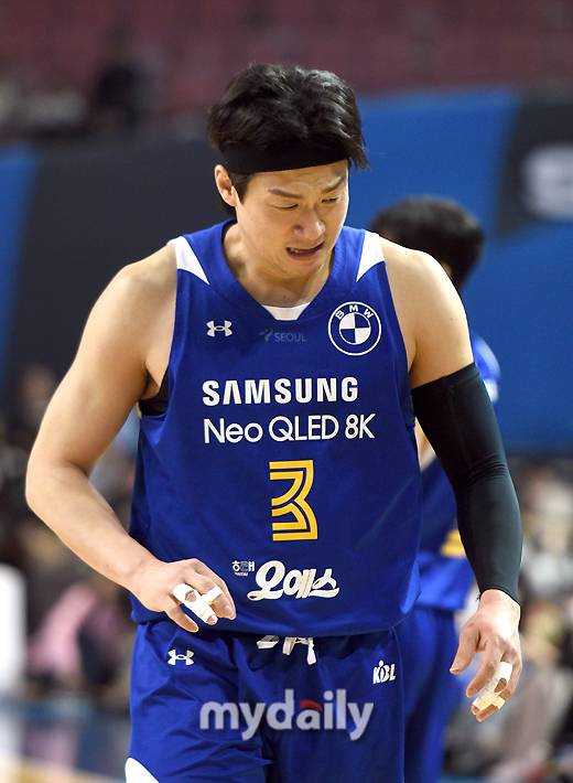 [마이데일리 = 유진형 기자] 서울삼성 이정현이 18일 오후 서울 잠실실내체육관에서 진행된 '2022-2023 SKT 에이닷 프로농구' 서울삼성과 창원LG의 경기에서 거친 수비에 손가락 통증을 호소하고 있다.