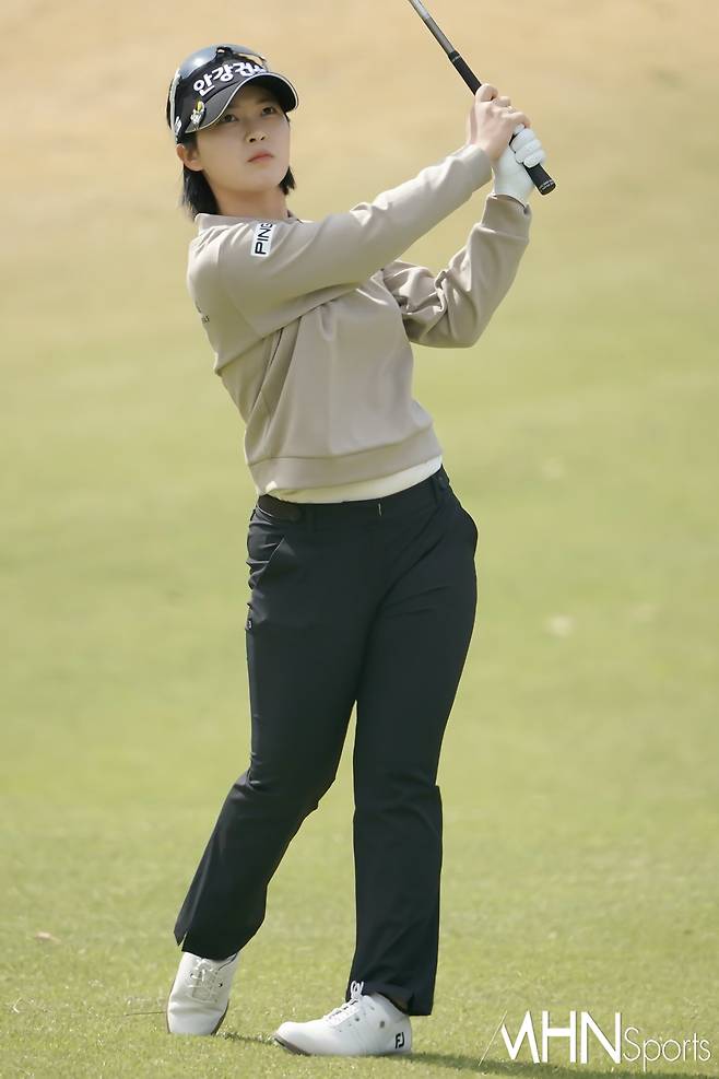 (MHN스포츠 여수, 박태성 기자) 18일 전남 여수시에 위치한 디오션컨트리클럽 이스트-웨스트 코스(파72ㅣ6,110야드)에서 KLPGA투어 최고 골프구단을 가리는 '디오션 비치콘도 발리스틱 컵 골프구단 대항전'(총상금 6천만원ㅣ우승상금 3천만원) 변형포섬 2라운드가 열린가운데, 안강건설 전예성이 2번홀 세컨드샷을 날리고 있다.
