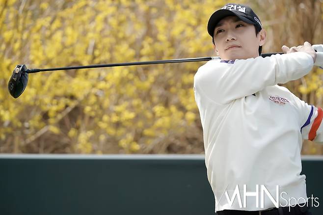 (MHN스포츠 여수, 박태성 기자) 18일 전남 여수시에 위치한 디오션컨트리클럽 이스트-웨스트 코스(파72ㅣ6,110야드)에서 KLPGA투어 최고 골프구단을 가리는 '디오션 비치콘도 발리스틱 컵 골프구단 대항전'(총상금 6천만원ㅣ우승상금 3천만원) 변형포섬 2라운드가 열린가운데, 안강건설 김시원이 2번홀 강한 티샷을 날리고 있다.