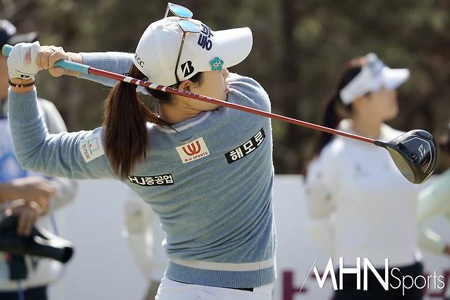 (MHN스포츠 여수, 박태성 기자) 18일 전남 여수시에 위치한 디오션컨트리클럽 이스트-웨스트 코스(파72ㅣ6,110야드)에서 KLPGA투어 최고 골프구단을 가리는 '디오션 비치콘도 발리스틱 컵 골프구단 대항전'(총상금 6천만원ㅣ우승상금 3천만원) 변형포섬 2라운드가 열린가운데, 동부건설 지한솔이 6번홀 티샷을 날리고 있다.