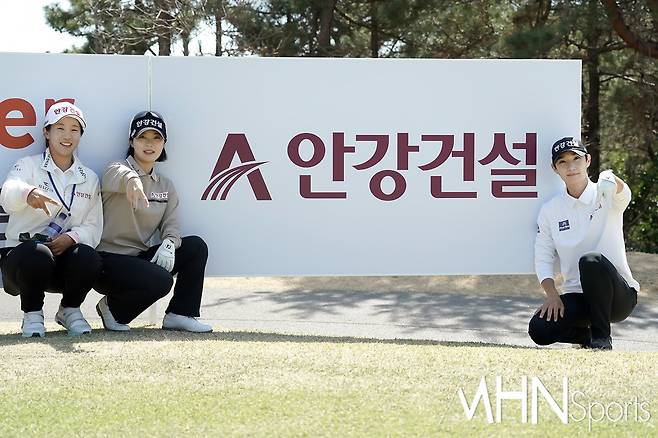 (MHN스포츠 여수, 박태성 기자) 18일 전남 여수시에 위치한 디오션컨트리클럽 이스트-웨스트 코스(파72ㅣ6,110야드)에서 KLPGA투어 최고 골프구단을 가리는 '디오션 비치콘도 발리스틱 컵 골프구단 대항전'(총상금 6천만원ㅣ우승상금 3천만원) 변형포섬 2라운드가 열린가운데, 안강건설 임진희, 전예성, 김시원이 안강건설 A를 그려보이고 있다.