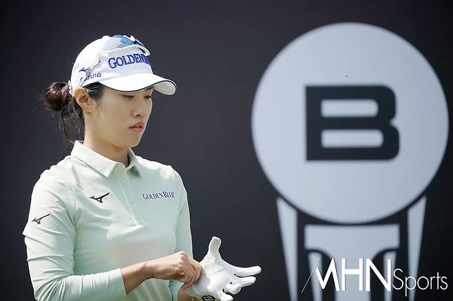(MHN스포츠 여수, 박태성 기자) 18일 전남 여수시에 위치한 디오션컨트리클럽 이스트-웨스트 코스(파72ㅣ6,110야드)에서 KLPGA투어 최고 골프구단을 가리는 '디오션 비치콘도 발리스틱 컵 골프구단 대항전'(총상금 6천만원ㅣ우승상금 3천만원) 변형포섬 2라운드가 열린가운데, 골든블루 이주미가 5번홀 티샷을 준비하고 있다.