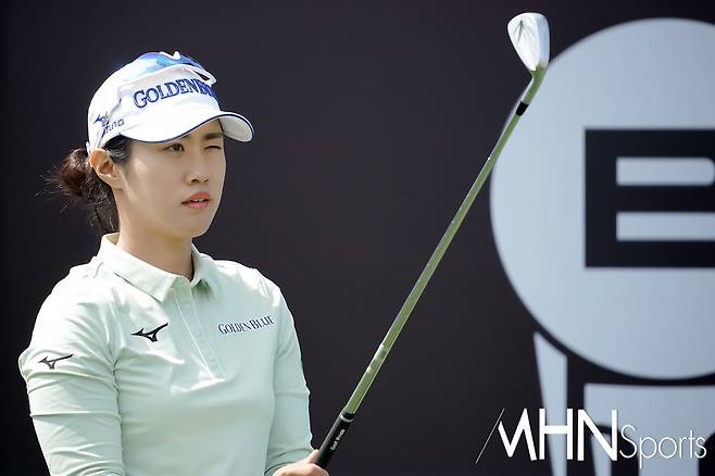 (MHN스포츠 여수, 박태성 기자) 18일 전남 여수시에 위치한 디오션컨트리클럽 이스트-웨스트 코스(파72ㅣ6,110야드)에서 KLPGA투어 최고 골프구단을 가리는 '디오션 비치콘도 발리스틱 컵 골프구단 대항전'(총상금 6천만원ㅣ우승상금 3천만원) 변형포섬 2라운드가 열린가운데, 골든블루 이주미가 5번홀 티샷을 준비하고 있다.