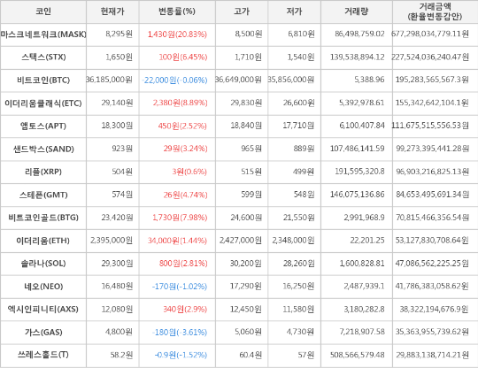 가상화폐 마스크네트워크 상승세... 전일대비 +20.83%