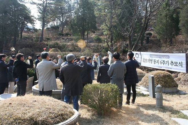 오늘 오전 11시 마석모란공원 민족민주열사 묘역에서는 '진보정당의 영원한 조직가'로 불리는 고 오재영의 6주기 추모식이 열렸다.