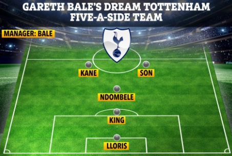 영국 '더 선'은 18일(한국시간) "가레스 베일은 자신이 감독이면 토트넘 선수 중 5인제 축구 팀을 어떻게 구성하고 싶냐는 질문을 받고 자신의 베스트 5를 선정했다. 손흥민과 해리 케인이 공격진을 구성했다"고 보도했다.