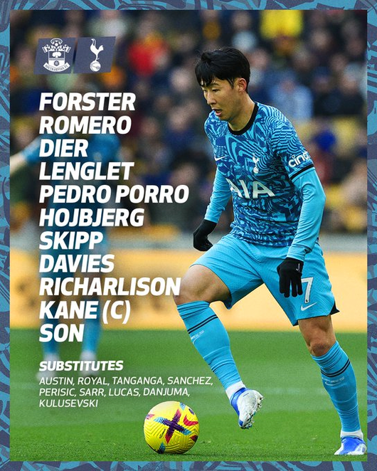 토트넘은 19일 사우스햄튼과 2022-2023 잉글리시 프리미어리그(EPL) 28라운드 원정경기 라인업을 공개했다.