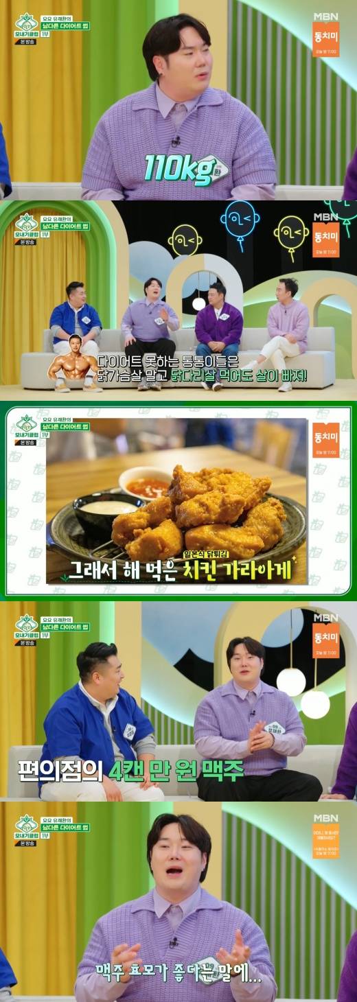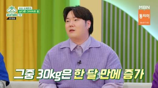 현재 몸무게가 110kg라고 밝힌 유재환은 “내가 104kg에서 살을 빼서 70kg까지 만들었는데 거기서 40kg가 찐 거다”라며, “근데 그중에 30kg가 거의 한 달 만에 확 쪘다”라고 털어놔 놀라움을 안겼다.