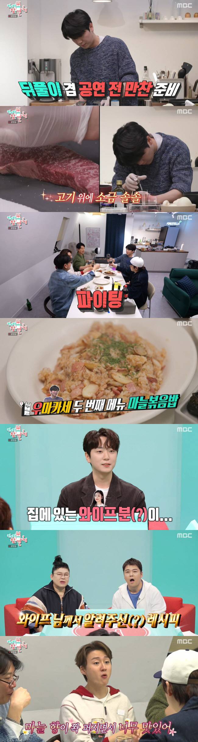 다음으로 고우림은 마늘볶음밥을 선보였고, 그는 "이 레시피는 집에 있는 와이프 분이 해주셨는데 너무 맛있어서 알려달라 했다. (김연아가) 요리하는 걸 좋아한다"고 김연아의 레시피라고 밝혔다.