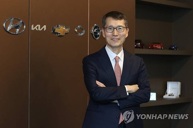 (서울=연합뉴스) 강민지 기자 = 강남훈 한국자동차산업협회장이 지난 14일 서울 서초구 자동차회관에서 진행된 인터뷰에 앞서 포즈 취하고 있다. 2023.3.19