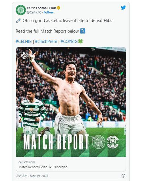 오현규의 활약으로 하이버니언을 꺾고 최근 리그 9연승을 이어간 셀틱은 승점을 82(27승 1무 1패)로 늘리며 압도적인 레이스로 선두를 질주했습니다.