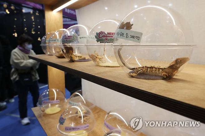(서울=연합뉴스) 강민지 기자 = 19일 오전 서울 강남구 SETEC에서 열린 '2023 희귀반려동물박람회'에서 참관객들이 파충류 등을 살펴보고 있다. 2023.3.19