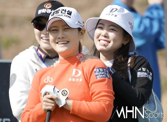 (MHN스포츠 여수, 박태성 기자) 19일 전남 여수시에 위치한 디오션컨트리클럽 이스트-웨스트 코스(파72ㅣ6,110야드)에서 KLPGA투어 최고 골프구단을 가리는 '디오션 비치콘도 발리스틱 컵 골프구단 대항전'(총상금 6천만원ㅣ우승상금 3천만원) 최종라운드가 열린가운데, 대방건설 현세린이 정연주 안마를 해주며 응원을 하고 있다.