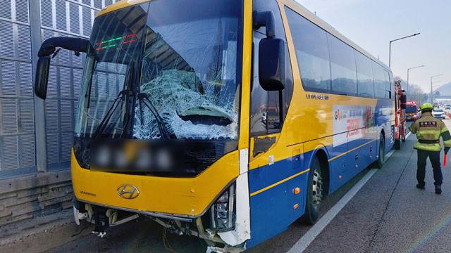오늘(19일) 오전 9시 20분쯤 충북 청주시 남이면 경부고속도로 상행선 남청주 나들목 인근에서 57살 A씨가 몰던 고속버스가 버스 전용 차로에 서 있던 승용차를 추돌했습니다.