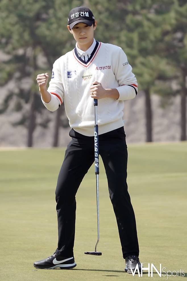 (MHN스포츠 여수, 박태성 기자) 19일 전남 여수시에 위치한 디오션컨트리클럽 이스트-웨스트 코스(파72ㅣ6,110야드)에서 KLPGA투어 최고 골프구단을 가리는 '디오션 비치콘도 발리스틱 컵 골프구단 대항전'(총상금 6천만원ㅣ우승상금 3천만원) 최종라운드가 열린가운데, 안강건설 김시원이 1번홀 그린 버디를 성공시키고 있다.