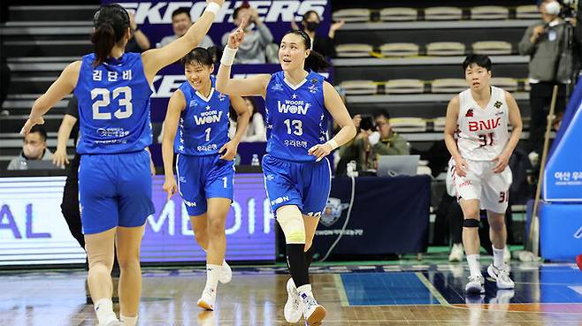 우리은행은 33초를 남기고 김단비가 자유투 1개를 넣어 4점 차로 달아났고, 이어 BNK 안혜지의 3점슛이 불발되며 사실상 승패가 정해졌습니다.