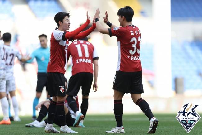 김포FC는 19일 오후 4시 광양축구전용구장에서 열린 전남 드래곤즈와의 하나원큐 K리그2 2022' 4라운드에서 2-0으로 승리했다. 승점 3점을 추가한 김포는 5위로 올라섰다. 전남은 11위에 머물렀다
