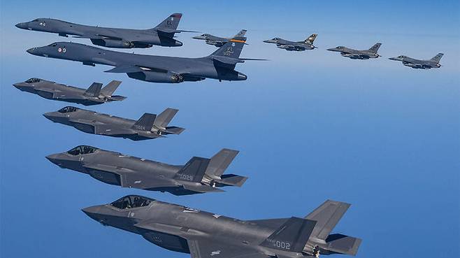 훈련에는 미국 사우스다코타주 엘즈워스 공군기지에서 출발한 B-1B 2대와 우리 공군 F-35A 스텔스 전투기, 미 공군 F-16 전투기도 참가했습니다.