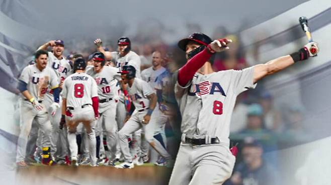 그리고 7회 말에도 솔로포를 얻어맞아 7대 5로 끌려갔는데요, 패색이 짙던 미국은 8회, 극적인 한 방으로 경기를 뒤집었습니다.
