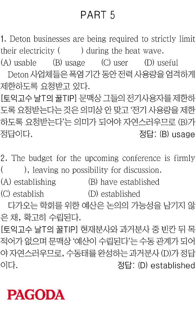 [파고다 강남 1타토익 RC김나래] PART 5