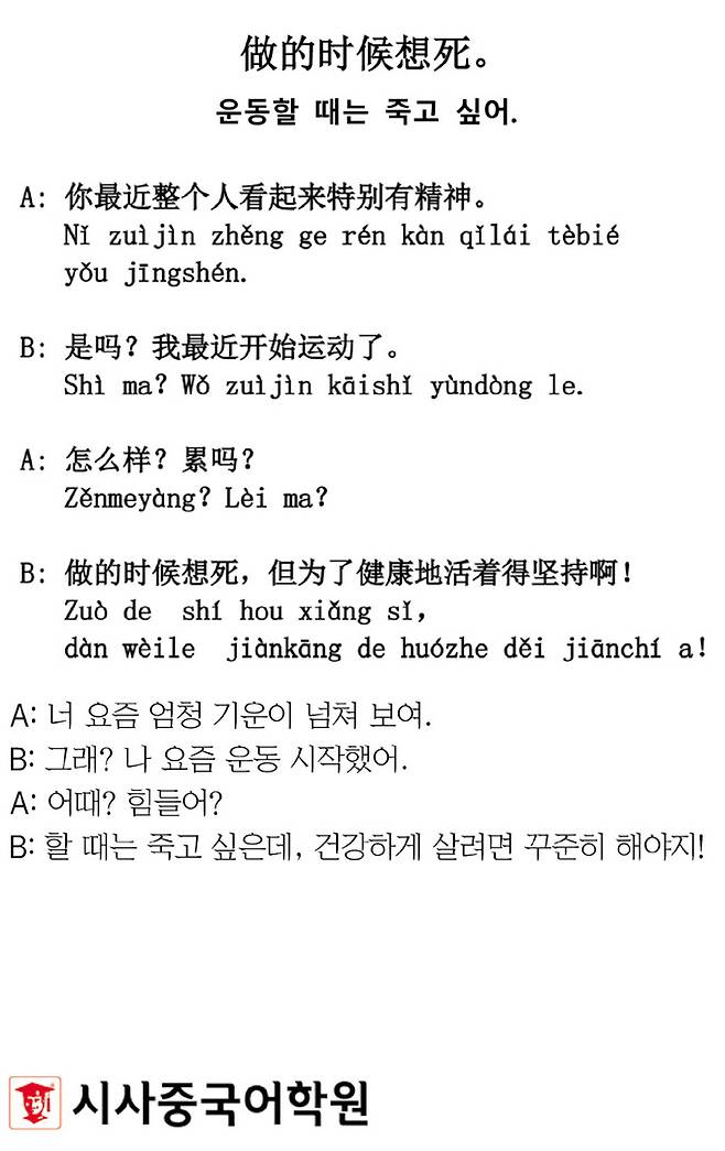 [시사중국어학원의 리얼 중국어 회화] 운동할 때는 죽고 싶어.